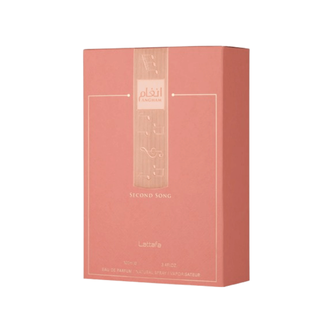 Angham Second Song von Lattafa ist ein moderner, femininer Duft, der mit Bergamotte und Birnenblüte eröffnet, in Orangenblüte, Pfingstrose und einen Hauch von Praline übergeht und schließlich mit Vanille, Tonkabohne, Ambroxan und Moschus für einen weichen, eleganten Ausklang sorgt